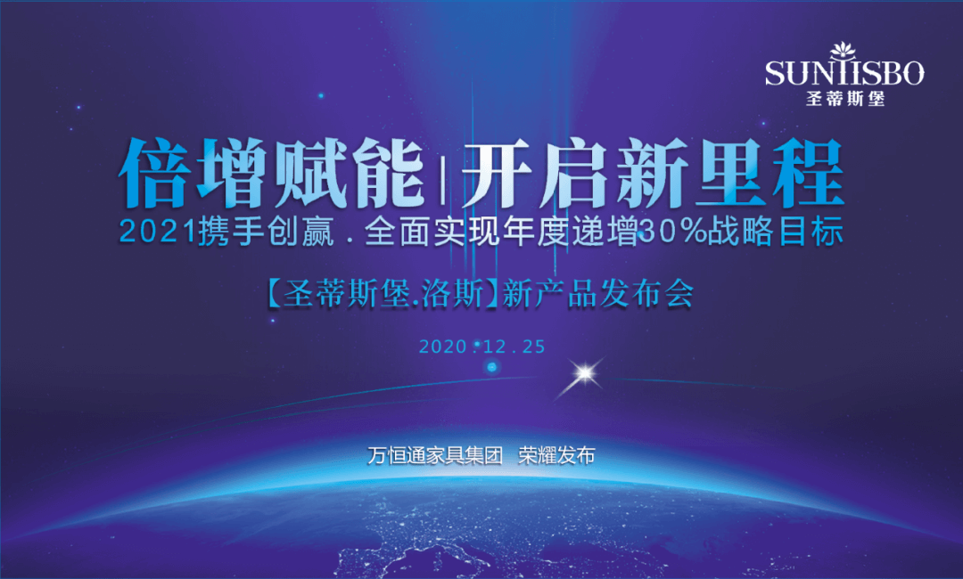 2020年12月25日,倍增賦能|開啟新里程——“圣蒂斯堡·洛斯”新品發布會在?廣東省東莞市厚街鎮會展中心南路2號的集團營銷中心盛大舉行,圣蒂斯堡董事長王健文先生攜公司高層領導,與來自五湖四海的經銷商家人們歡聚一堂,共同見證【圣蒂斯堡·洛斯】新品榮耀面世,正式拉開了圣蒂斯堡2021年的發展序幕。