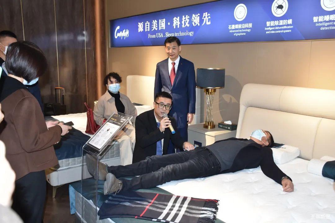 嘉賓們紛紛現場體驗夢凱莎床墊的科技睡感。