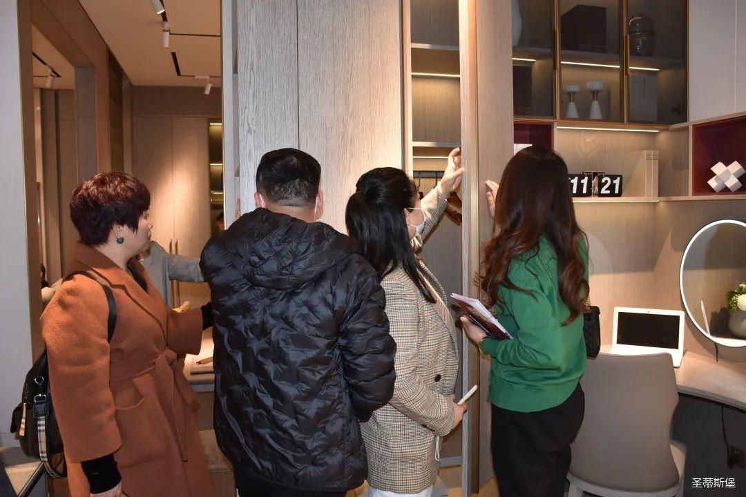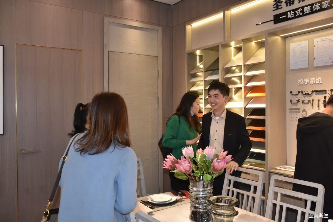 展廳內,專業的導師為嘉賓們詳細介紹了產品工藝特點、整體造型特色、裝飾元素以及色彩搭配等;還有全屋定制、固裝、營銷等部門高管,與經銷商熱情的交流溝通,并為大家講述了圣蒂斯堡的原創設計理念?!奥逅埂敝鞔虻牟町惢p奢,更是贏得了在場經銷商家人的高度贊譽;圣蒂斯堡用實際行動證明了在家居界不可比擬的產品優勢和實力。