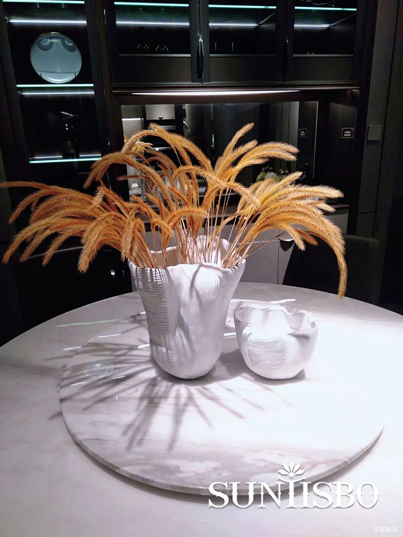 3.輕奢的配飾也需邀來(lái)似錦繁花相稱。色彩跳脫的植物更為亮眼,讓自然界的色彩與姿態(tài)應(yīng)和空間之間的協(xié)調(diào),傳遞空間與情感的共鳴。
