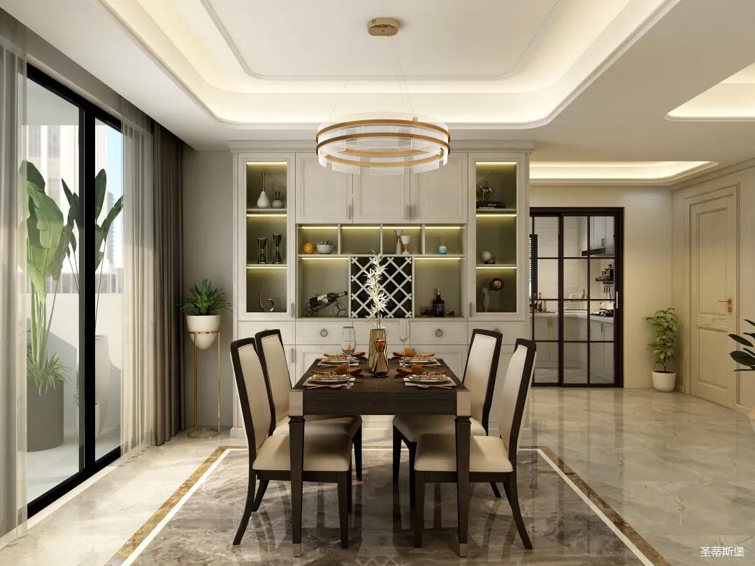 ▲餐廳定制了餐邊柜,作為家庭生活浪漫的主要基地。菱形的小格子間滿足了男主人收藏美酒的喜好,可視區域也逃不掉女主人收藏瓶瓶罐罐的藝術品。