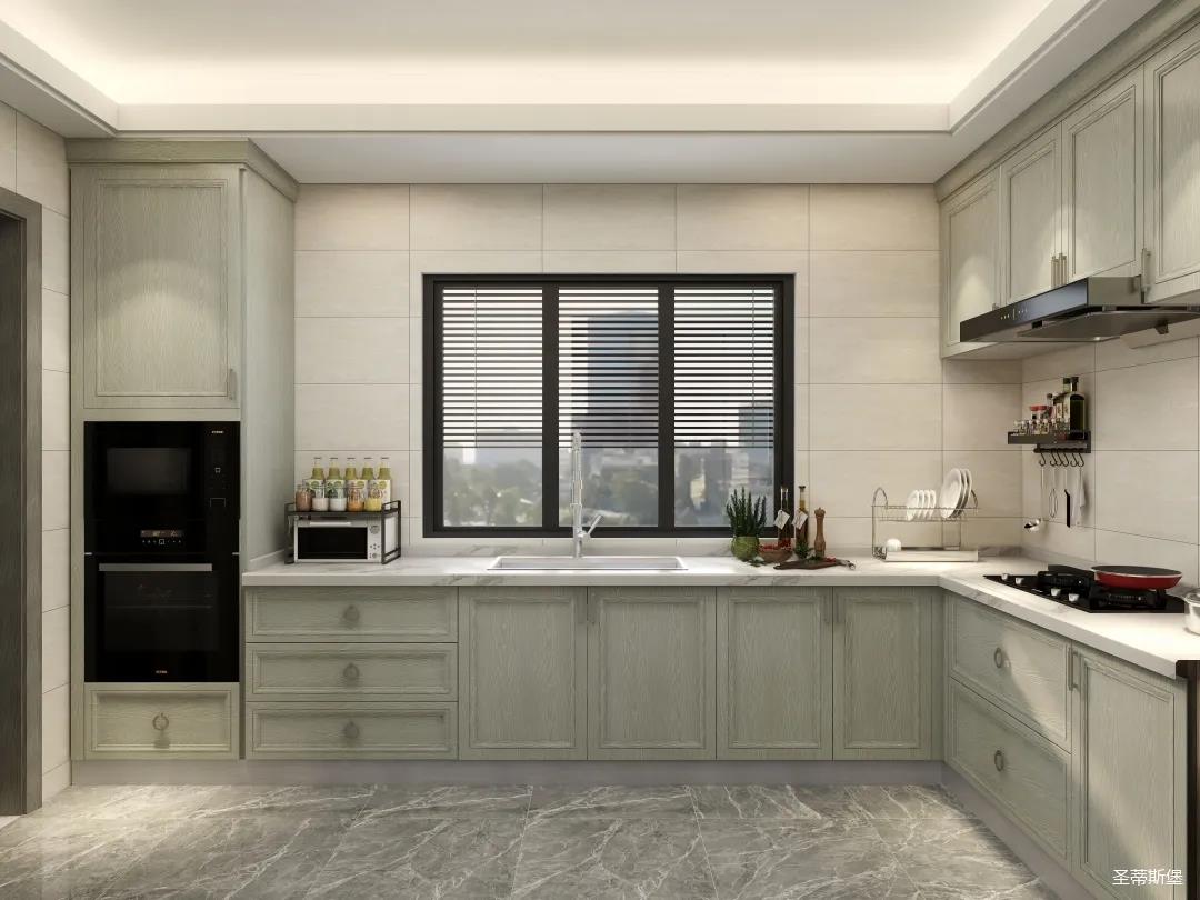 ▲廚房運用幾何線條鋪滿一整面墻,是滿滿的靈動和美感,實木材質的質感賦予了廚房空間品質與格調。按比例分配大小,打造成儲物格框架,讓每個角落都留下業主生活的痕跡。