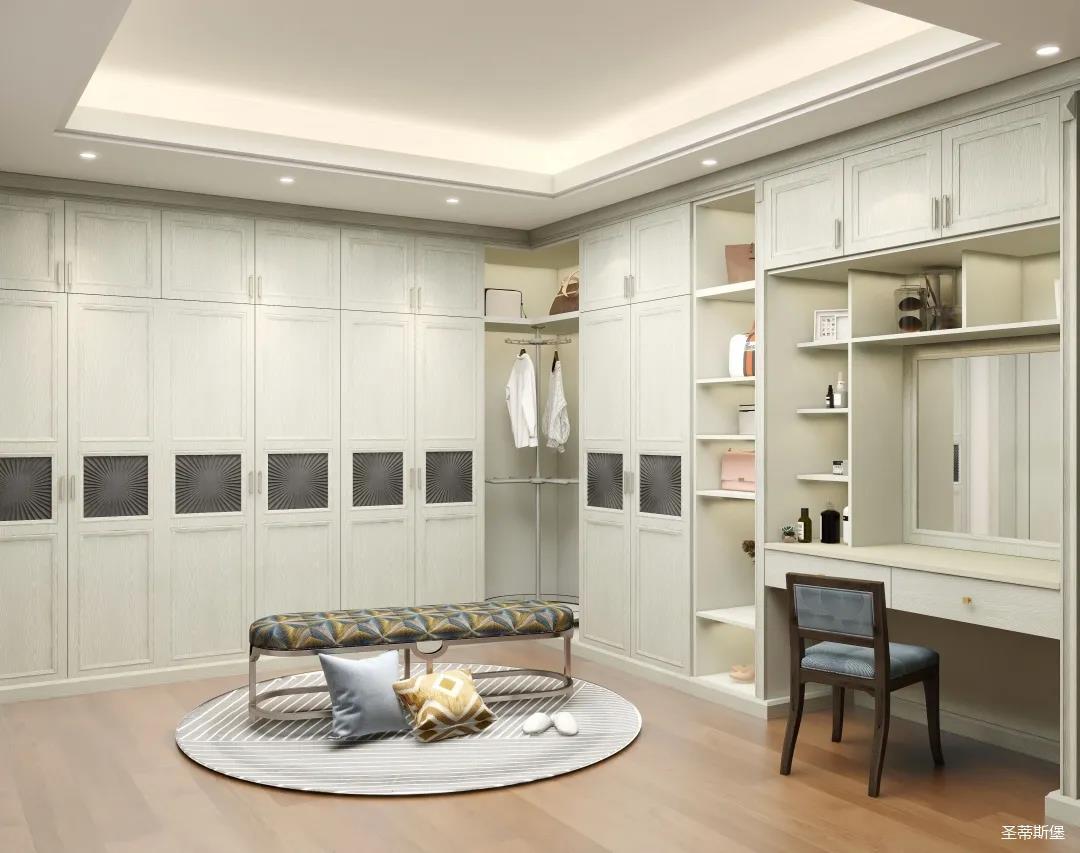 ▲業主喜歡低調輕奢的空間格調,設計師從功能出發,賦予空間舒適的感受,打造專屬的衣帽間,滿足業主日常買買買的儲物喜好。同時也將藝術元素融入美式現代風格,利用空間的色彩、紋理、家具、配飾、光線等表達空間情緒,再以黃銅金屬加持,營造溫馨愜意的家居睡眠氛圍。