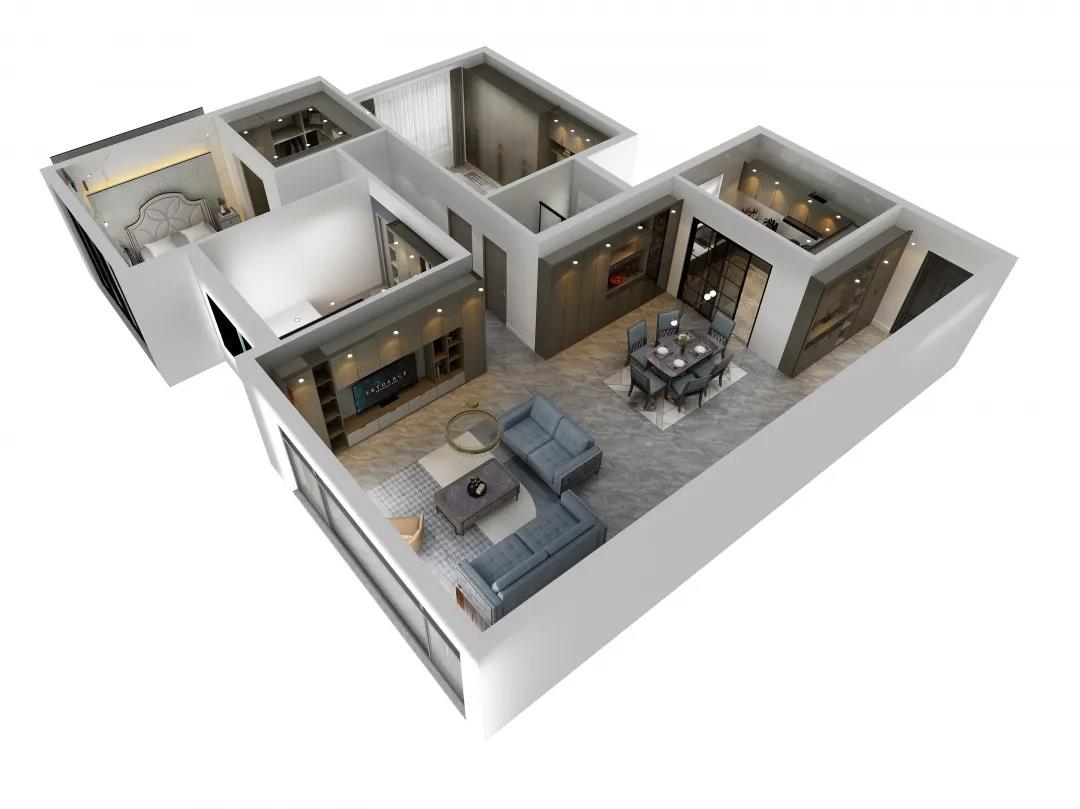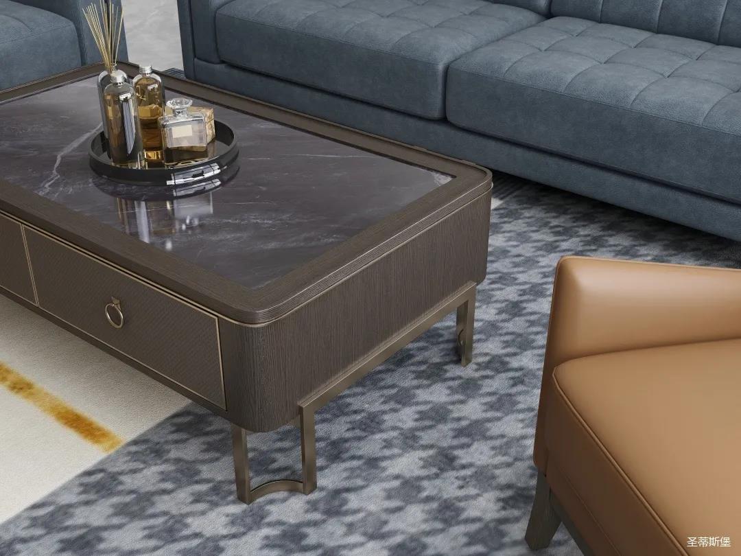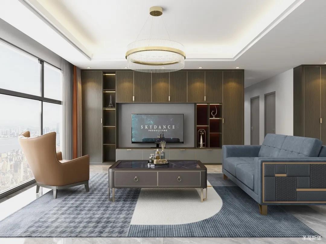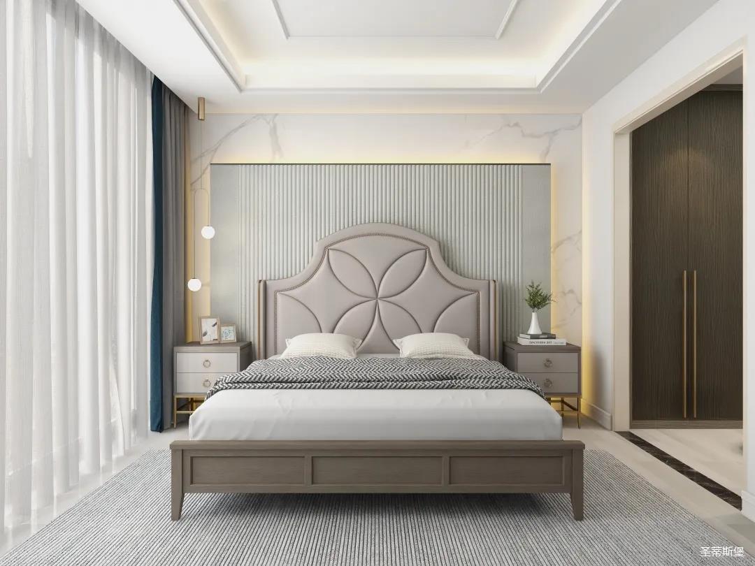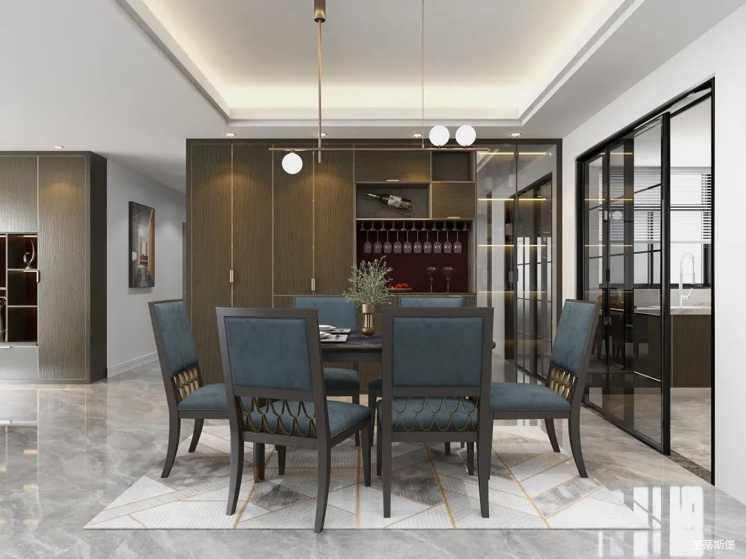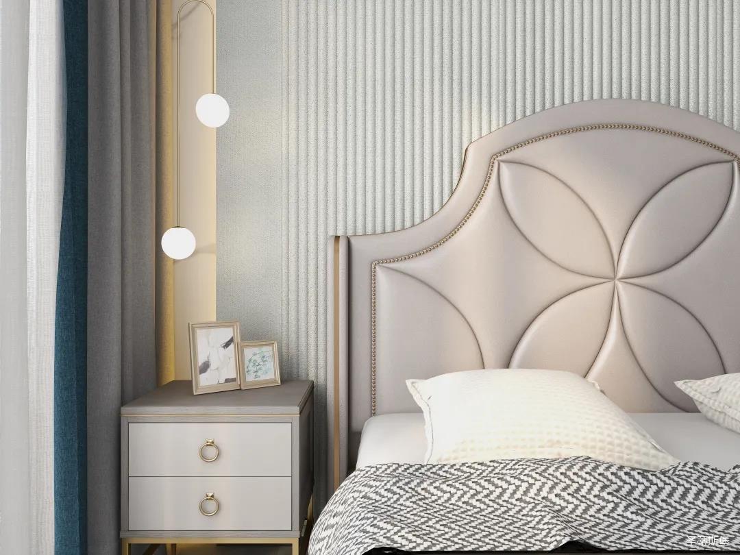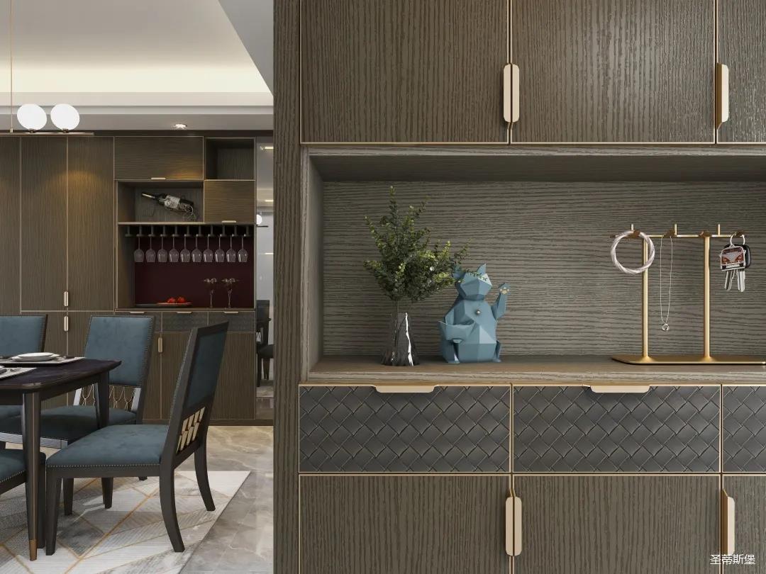 材質的交替與光影的變換,具有濃濃的現代簡奢色彩獨一無二的英倫爵士灰定制柜,由延邊鑲嵌的香檳金拉絲金屬分割,線條流暢且奢華,不僅代表著時尚,也崇尚了實木韻味。設計師將現代、實用、精致的藝術設計風格應用其中,更是精致生活方式的藝術演繹。在平靜的空間中表現出獨特的藝術骨感,滿足我們對精致生活的精神追求。