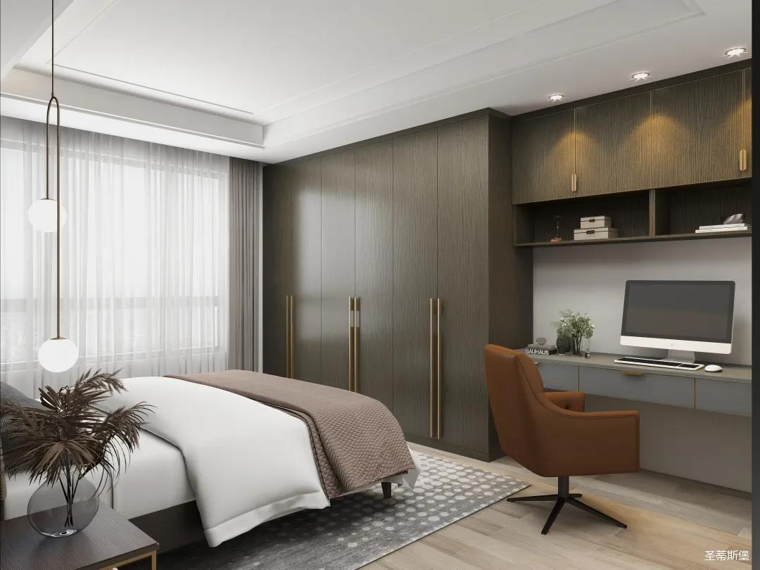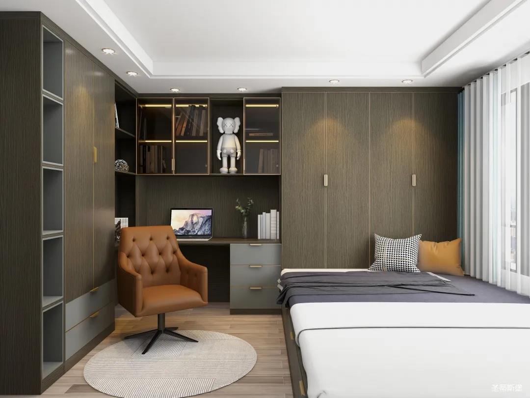 別具一格的定制,都是通過高級材質與色彩來展現極簡摩登生活。一字型衣柜+書桌設計,打造了“簡而不減”的別致空間。深邃的灰色系定制為空間注入現代都市風情,在品位簡約中彰顯奢華氣質!