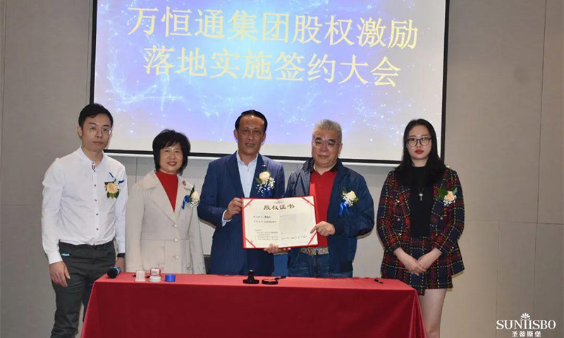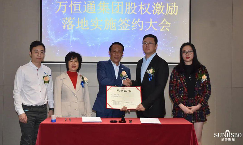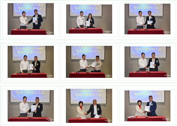 JN江南体育官方网站集團執行董事及法人代表王浩基先生正式為第一期六位虛擬受限股股東授予榮譽證書并簽訂股權分配協議。