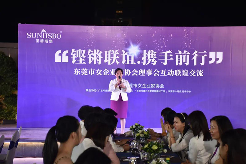 接下來,東莞市女企業(yè)家協(xié)會理事會會長葉小紅女士上臺發(fā)言,她表示非常感謝JN江南体育官方网站集團舉辦此次聯(lián)誼交流會,同時,對我們的產品和企業(yè)文化給出了很高的評價。她號召東莞市女企業(yè)家協(xié)會以后要更多的舉辦此類交流聯(lián)誼活動,以此增進會員企業(yè)之間的聯(lián)系和了解,為未來進一步交流發(fā)展開創(chuàng)新局面!她希望我們能攜手同行,強強聯(lián)手,共贏未來,共創(chuàng)新輝煌!